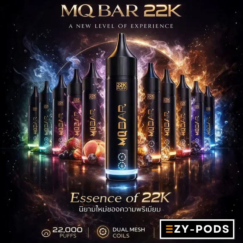 พอตใช้แล้วทิ้งรุ่นใหม่ล่าสุด MQ Bar 22K อัปเกรดความฟินมาเพื่อแทนที่ Kenzo 22K โดยเฉพาะ! ให้จำนวนคำสูบสูงถึง 22,000 คำ มาพร้อมเทคโนโลยีคอยล์คู่ (Dual Mesh Coil) รีดกลิ่นและรสชาติได้เข้มข้นถึงใจ ดีไซน์สวยหรู นิค 30mg อิ่มกำลังดี มีให้เลือกถึง 10 รสชาติยอดฮิต